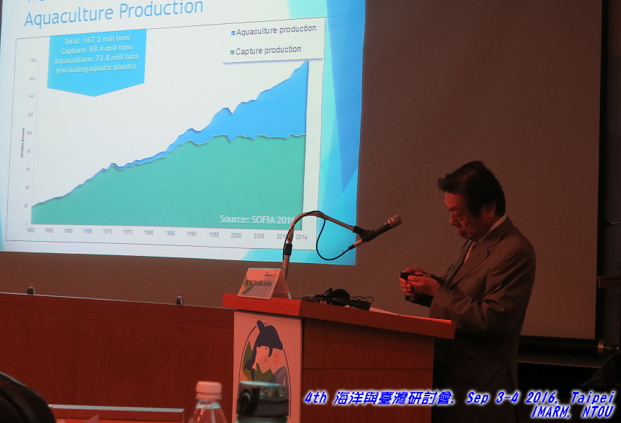 聯合國糧農組織(FAO)前助理副祕書長野村一郎 (Dr. Ichiro Nomura)則就他在FAO服務十多年,所統籌各項國際漁業管理的經驗與大家分享。FAO每兩年出版的全球漁業與養殖報告中,讓大眾清楚了解海洋漁業與養殖漁業的發展,也從中探討管理的重要議題與困境,包括1.資訊不足以進行資源評估;2. 漁業資源下降;3.缺乏有效管理;4. 缺乏有效監控措施;5. 國際參與性不足等五大問題。也因此,FAO建議各國能夠遵循聯合國海洋法等國際規範、積極參與國際組織、善盡船旗國責任。對於未來發展,包括公海生物多樣性協議、底拖漁業以及混獲物種的管理、動物福利,乃至養殖漁業的發展都是必須投注心力的重點。